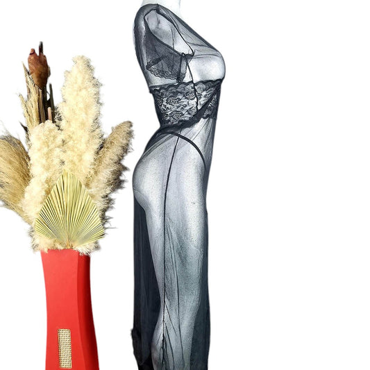 Bata larga de malla que envuelve tu cuerpo con provocación etérea