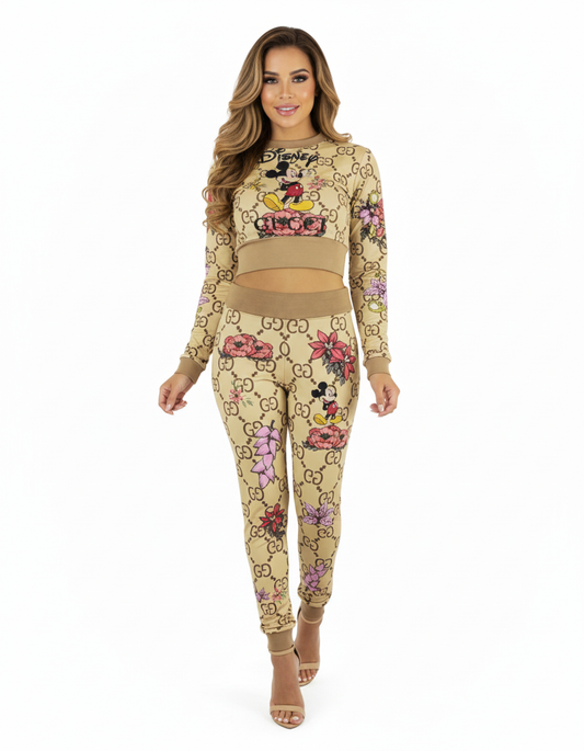 Conjunto con leggins estampados que estiliza con fuerza visual urbana