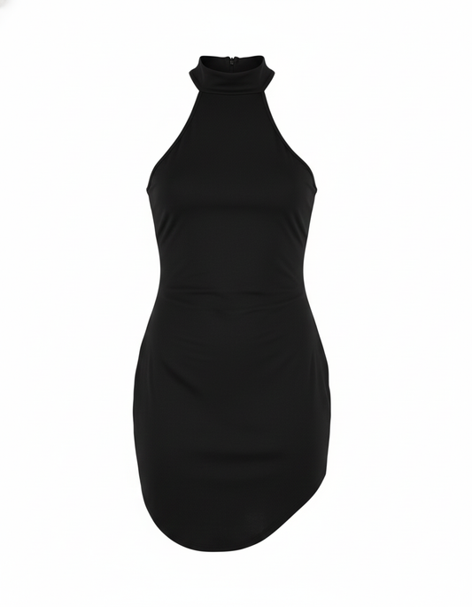 Minivestido entallado con cuello tortuga y fruncido lateral en efecto vinil