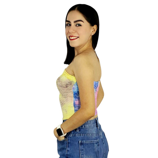 Crop top tipo tubo con estampado vibrante que resalta tu alegría natural