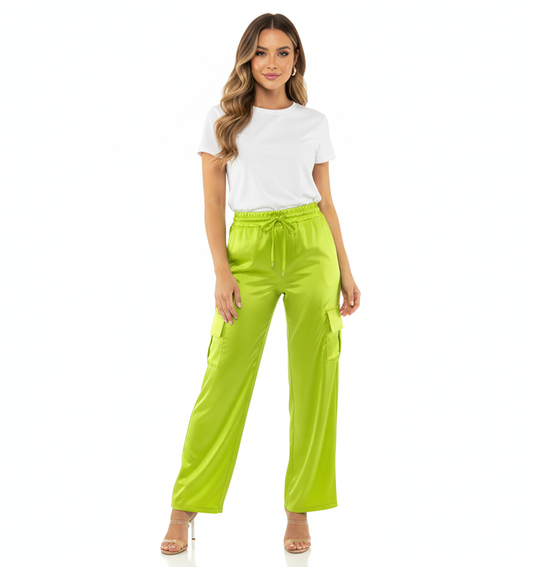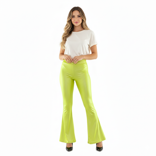 Pantalón acampanado satinado con brillo que potencia tu energía visual