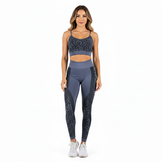 Conjunto deportivo moldeador con estampado felino que potencia tu energía