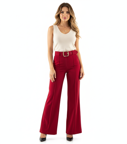 Pantalón acampanado con cinturón que estiliza y realza tu presencia