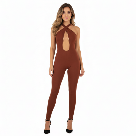 Enterizo largo con escote cruzado que resalta tu silueta con sensualidad sofisticada