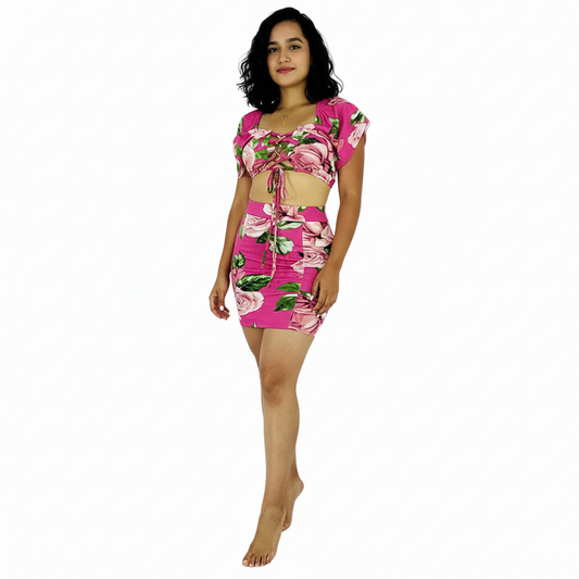 Conjunto floral con minifalda y top ajustable para vibrar con alegría femenina