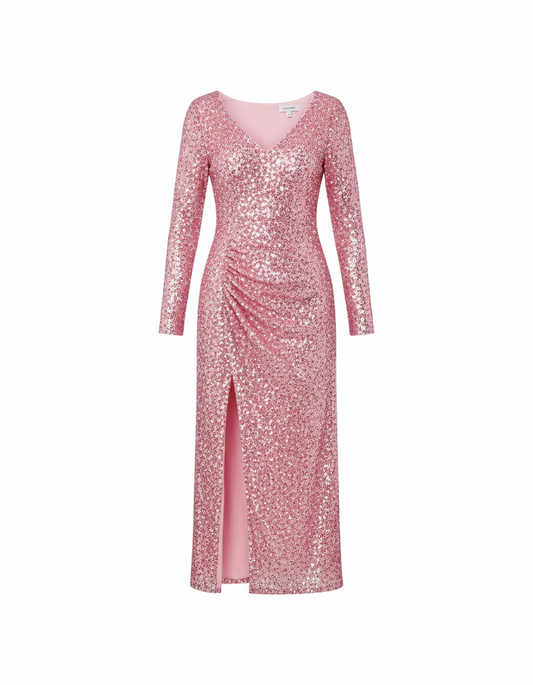 Vestido largo de lentejuelas con escote que celebra tus curvas con glamour
