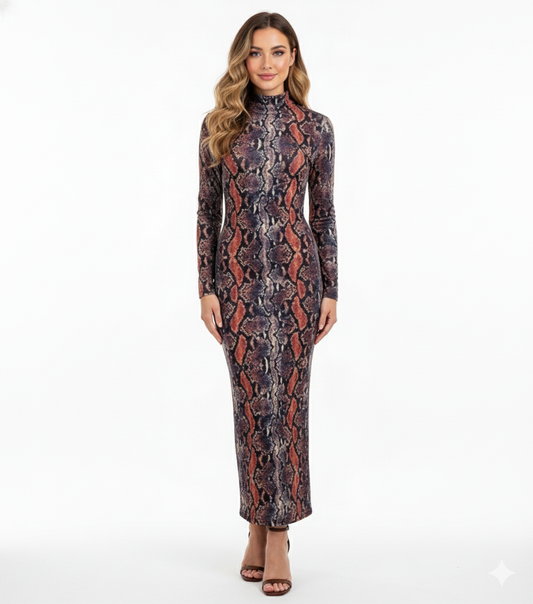 Vestido largo animal print con silueta que estiliza sin esfuerzo