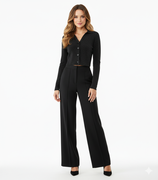 Conjunto casual con brillo sutil que estiliza sin esfuerzo