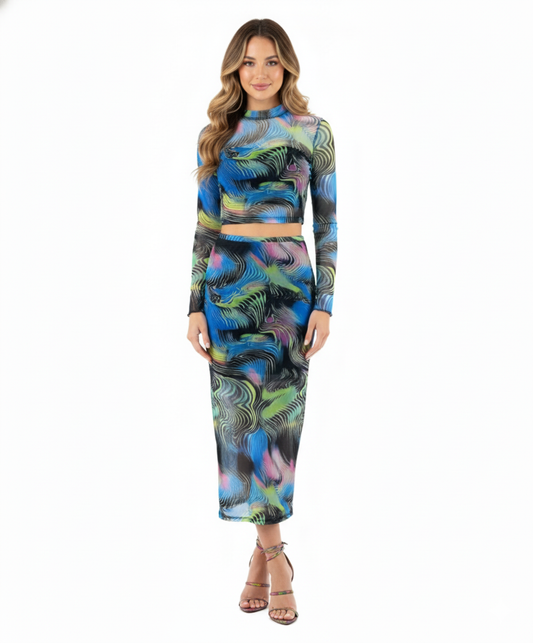 Conjunto con falda translúcida que potencia tu energía creativa