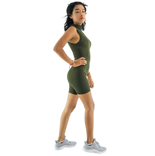 Enterizo corto con cuello alto y cremallera que potencia tu figura