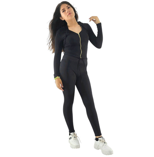 Conjunto deportivo con capucha que estiliza con fuerza visual