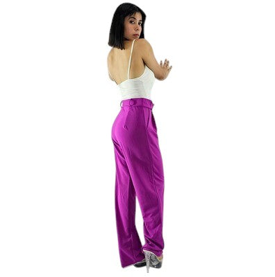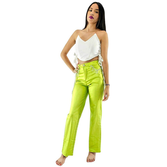 Pantalón recto satinado con brillo sutil y detalle de cadenita