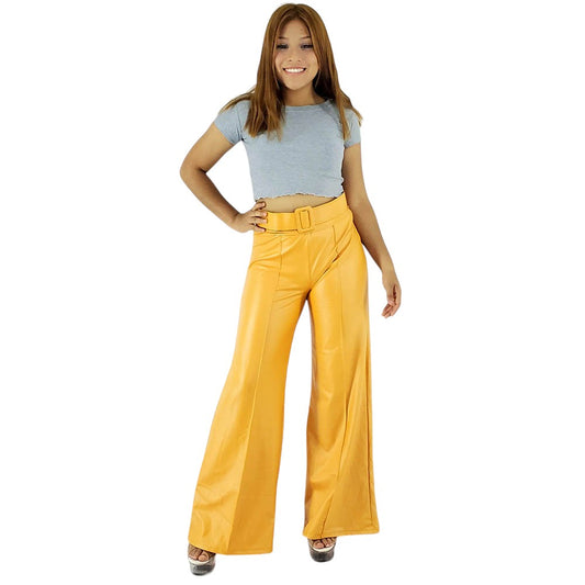 Pantalón acampanado de vinipiel con cinturón que alarga visualmente tus piernas