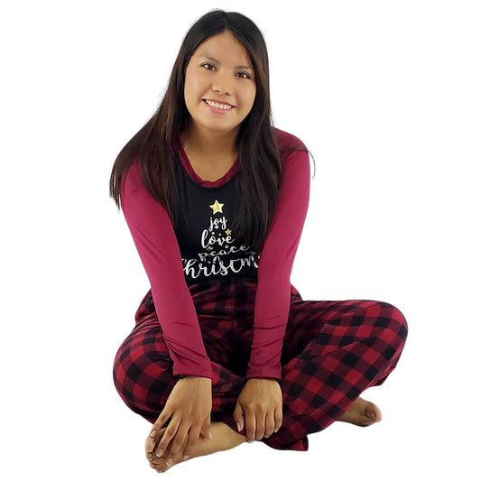 Pijama de dos piezas con mensaje navideño y cuadros que abrazan tu comodidad