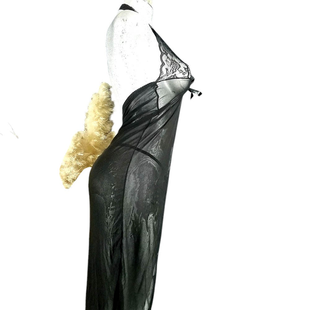 Babydoll largo de encaje y transparencias con escote halter y corte sensual