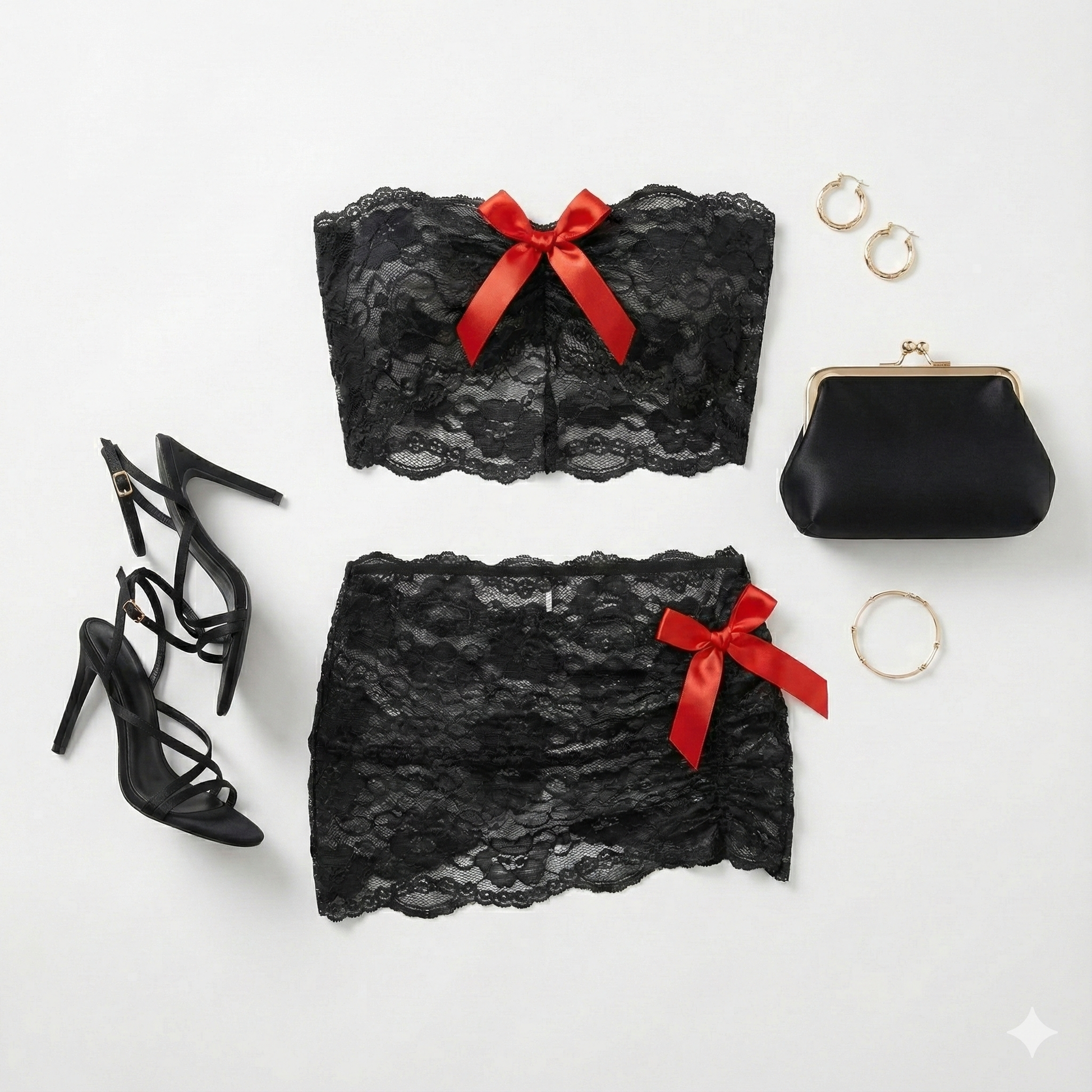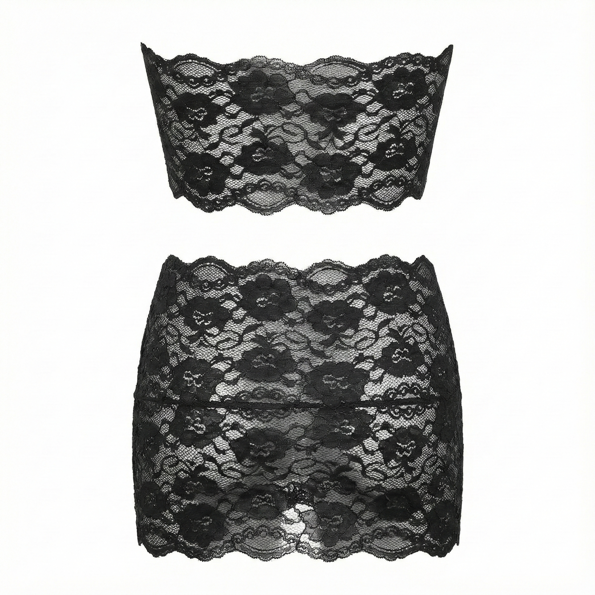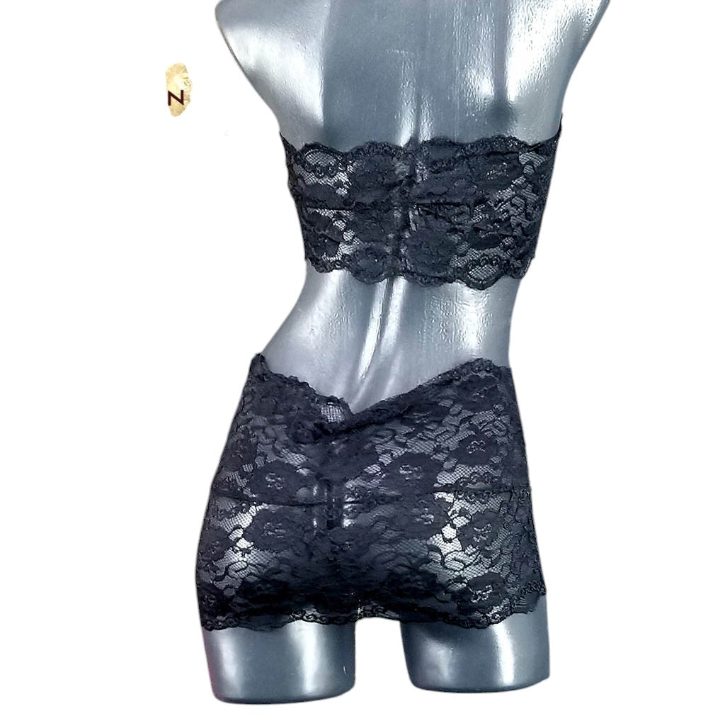 Este conjunto de lencería combina la suavidad del encaje floral con un diseño coqueto y atractivo. El top tipo banda sin tirantes y la falda corta de encaje transparente, decorados con moños contrastantes, evocan un aire travieso y delicado al mismo tiempo. Ideal para sentirte femenina, segura y encantadora, este conjunto realza tus curvas con un equilibrio perfecto entre insinuación y ternura.