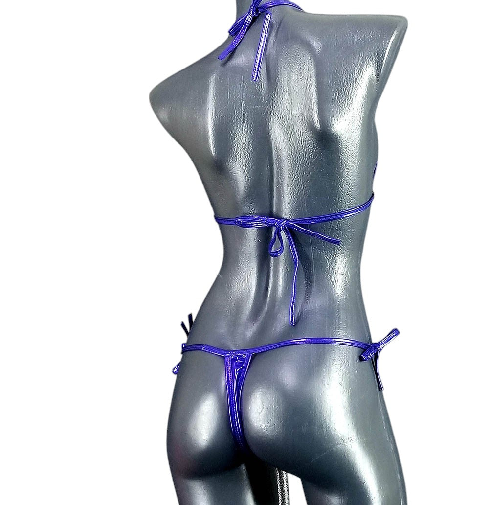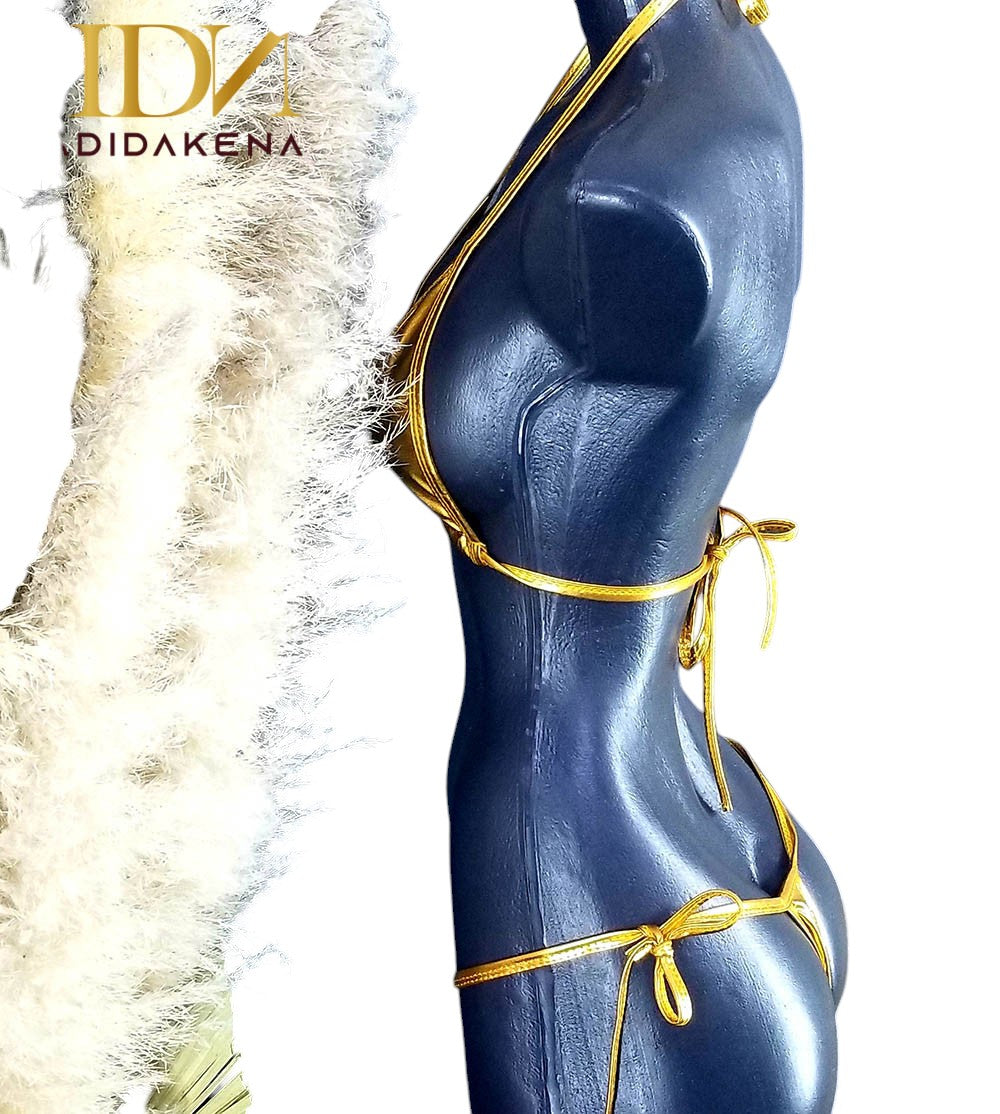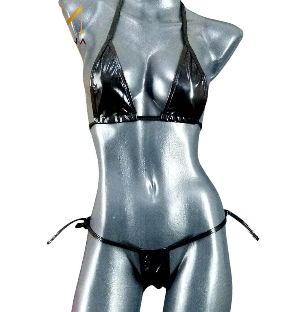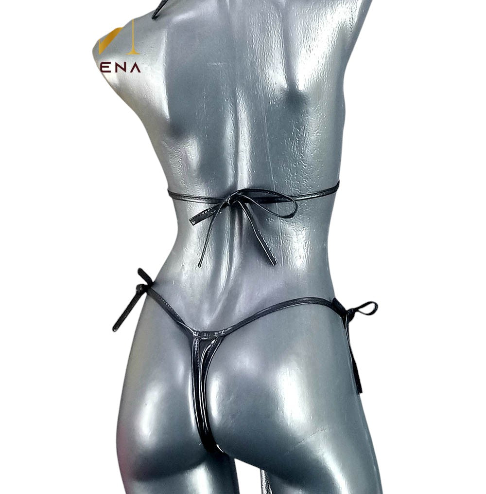 Este bikini liso de acabado metálico irradia una presencia provocadora con elegancia contenida. Su diseño ajustable en espalda, cuello y costados ofrece un fit perfecto que estiliza y revela. La silueta triangular del top y el corte ultra mínimo del bikini logran un equilibrio entre sensualidad cruda y estética refinada. Es una pieza que celebra el cuerpo con intención, no con exceso.