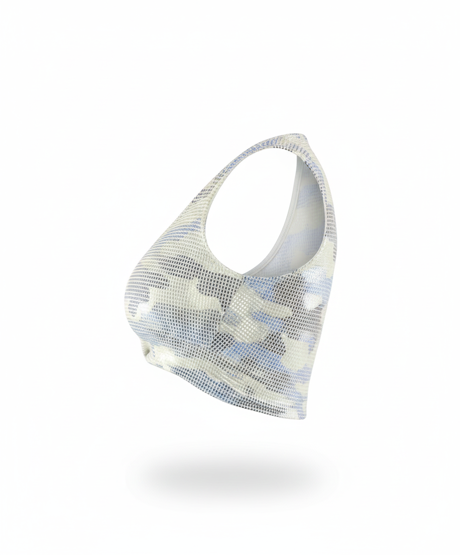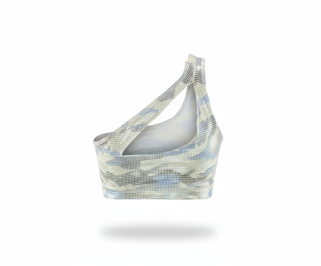 Este crop top asimétrico con escote en forma de gota redefine el estilo deportivo-sensual. Su diseño de una sola manga y estampado de escamas con acabado metálico crean una proyección de fuerza y sofisticación innegable. Ideal para mujeres que desean una silueta definida con carácter, esta blusa no se esconde: resalta lo mejor de ti.