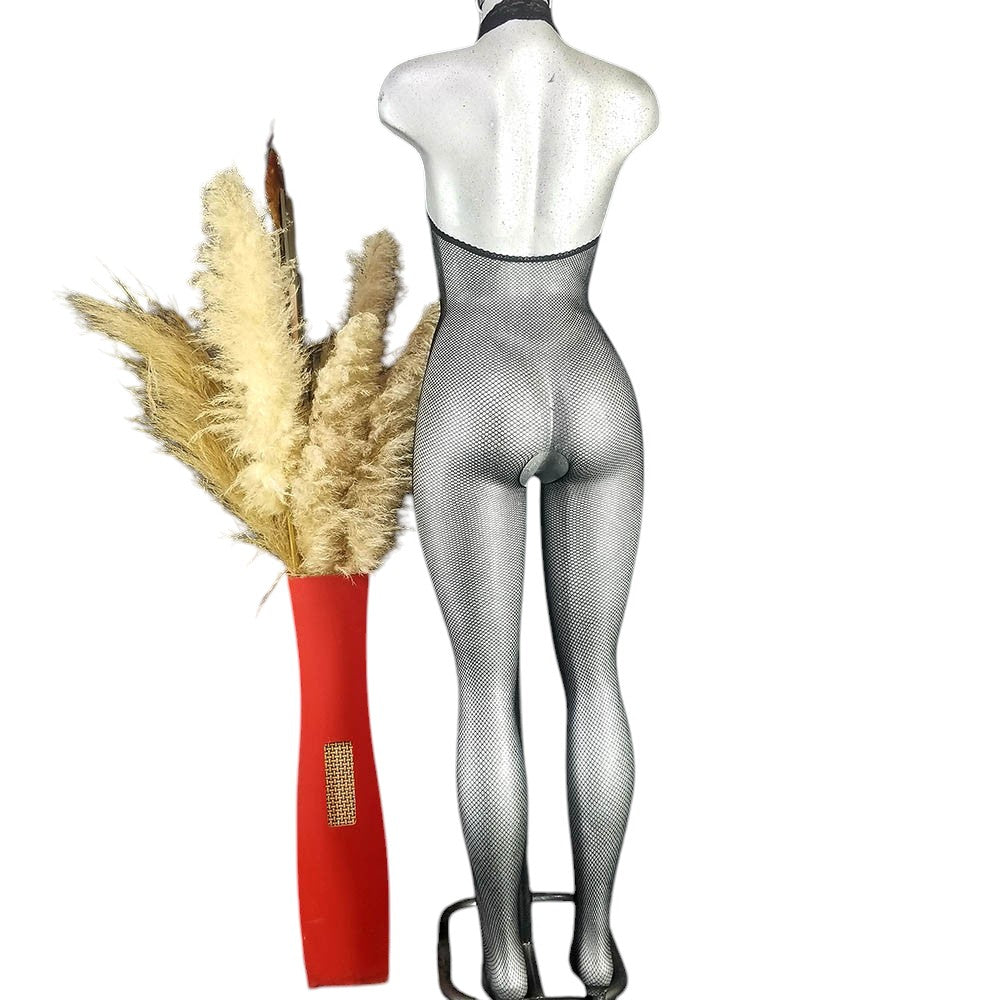 Este body teddy largo de malla transparente con aberturas estratégicas realza la figura con un diseño que juega con la insinuación y el poder visual. Su escote halter y tejido ceñido se funden con tu piel como una segunda capa, estilizando cada curva con una sensualidad sofisticada. Ideal para momentos íntimos o sesiones boudoir donde cada detalle cuenta.