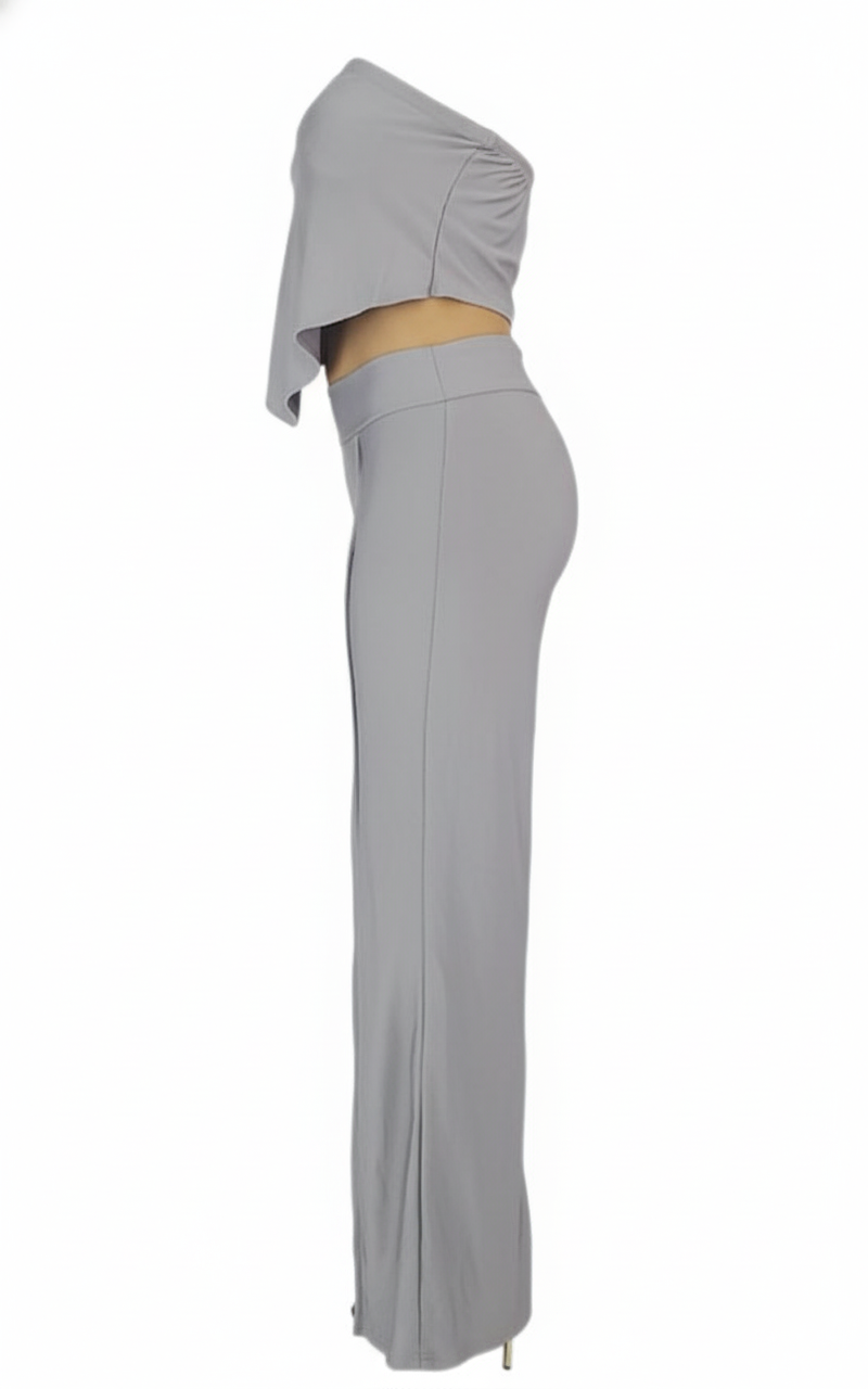 Este conjunto de top strapless y pantalón acampanado con costuras visibles combina el aire elegante con un toque despreocupado. El pantalón de talle alto define la figura mientras que el top fluido aporta movimiento y sensualidad. Ideal para proyectar estilo sin esfuerzo, ya sea en la oficina o en una salida con amigas.