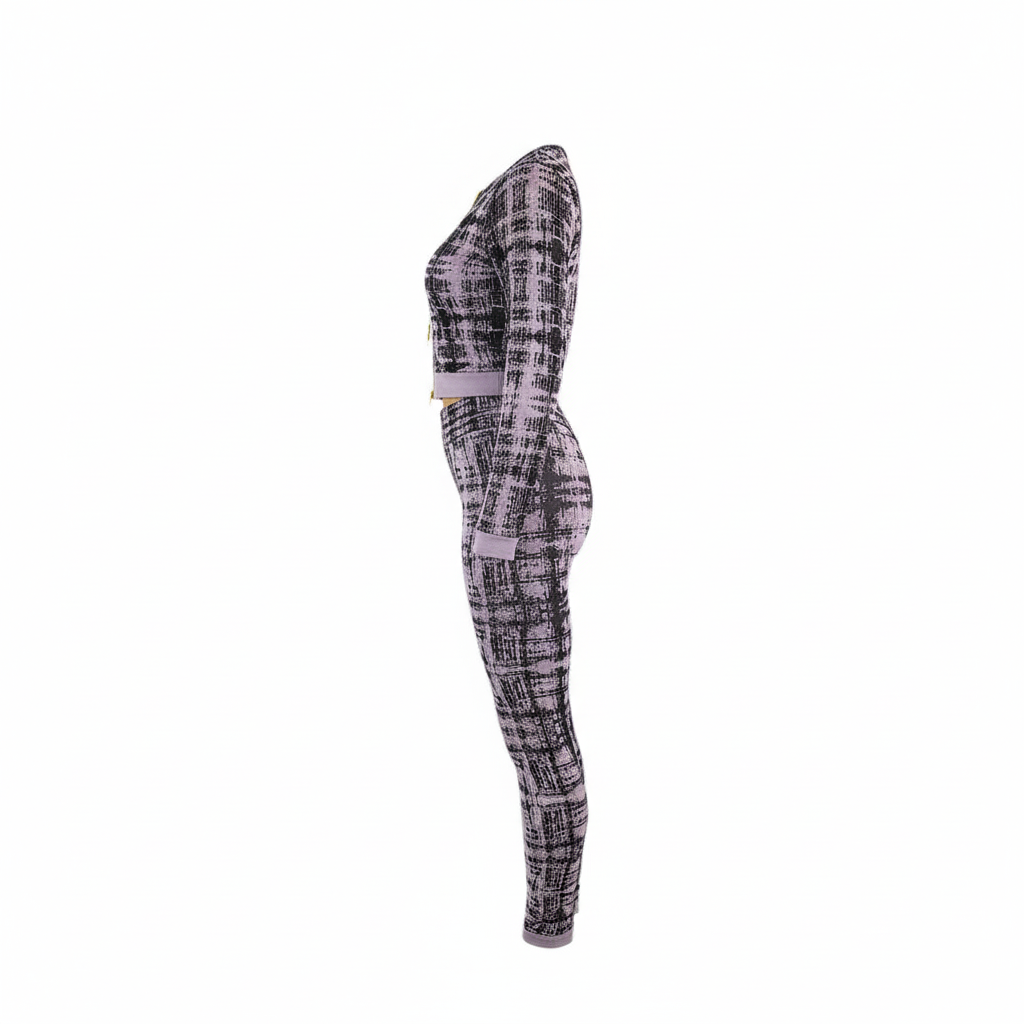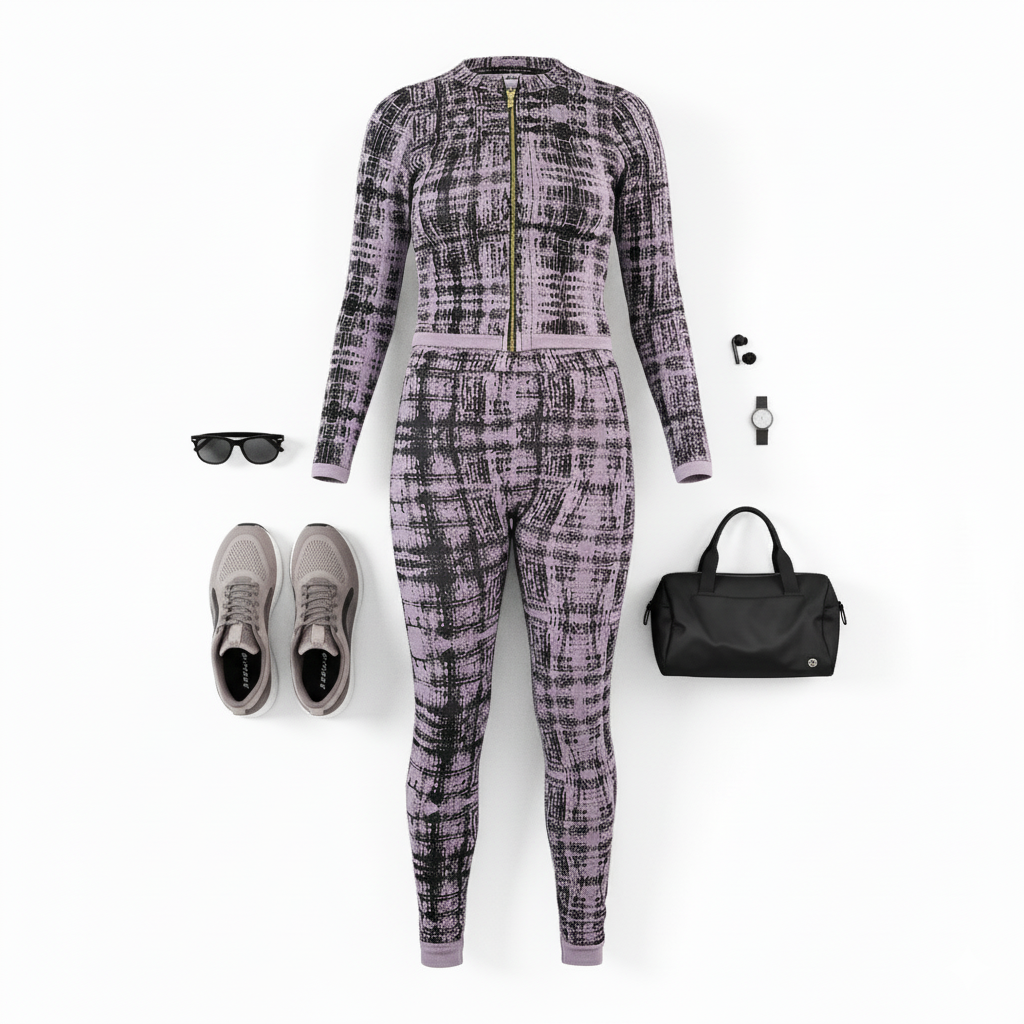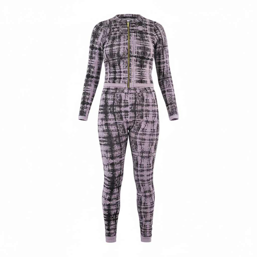Este conjunto deportivo con cierre frontal combina estructura visual y libertad de movimiento. Su textura con efecto greca y corte slim fit se adaptan al cuerpo moldeando cintura, abdomen y glúteos con efecto Push Up. La lycra Santoni garantiza ajuste flexible, mientras que el diseño frontal con cremallera le da un toque firme y moderno para entrenar con estilo.