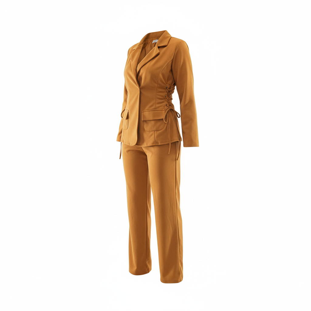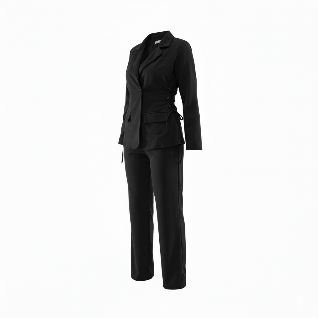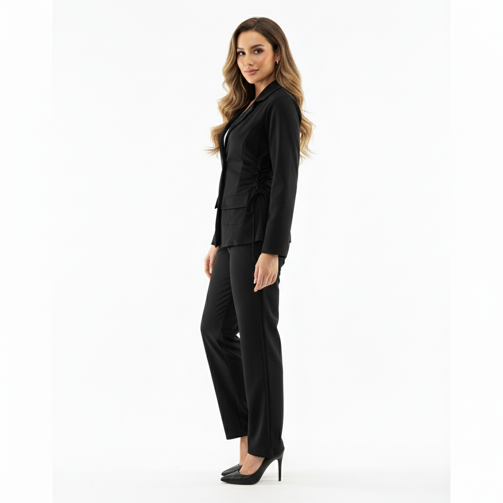 Este conjunto de saco con bolsas simuladas y pantalón recto es la fusión perfecta entre estructura y comodidad. Su diseño proyecta una imagen segura y pulida sin perder naturalidad. Ideal para quienes desean destacar en un entorno profesional con estilo propio, sin exagerar ni pasar desapercibidas.
