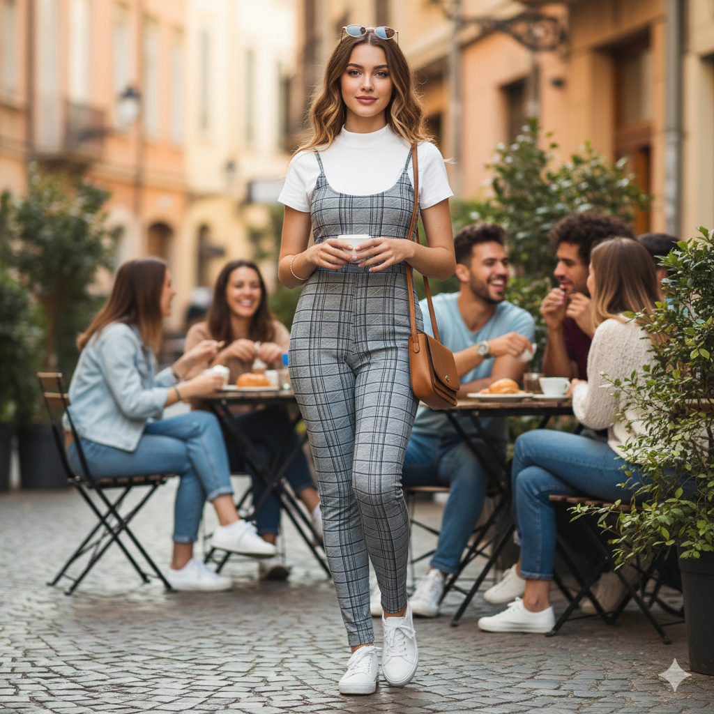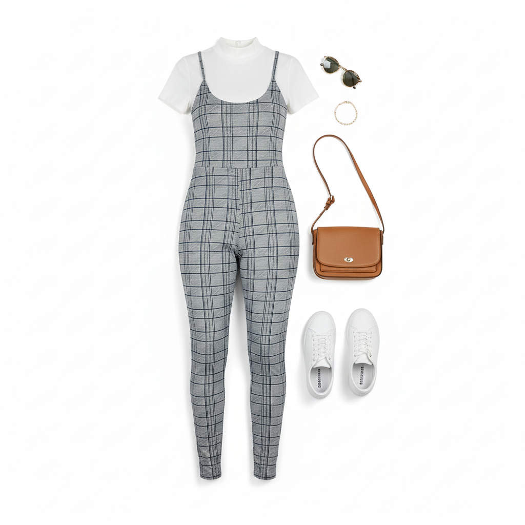 Este palazzo largo con estampado a cuadros es la elección perfecta para la mujer que busca elegancia casual con un toque contemporáneo. Su tiro alto y corte fluido estilizan la figura mientras que el crop top blanco incluido añade un punto fresco y juvenil. Ideal para quienes aman verse bien sin complicarse.