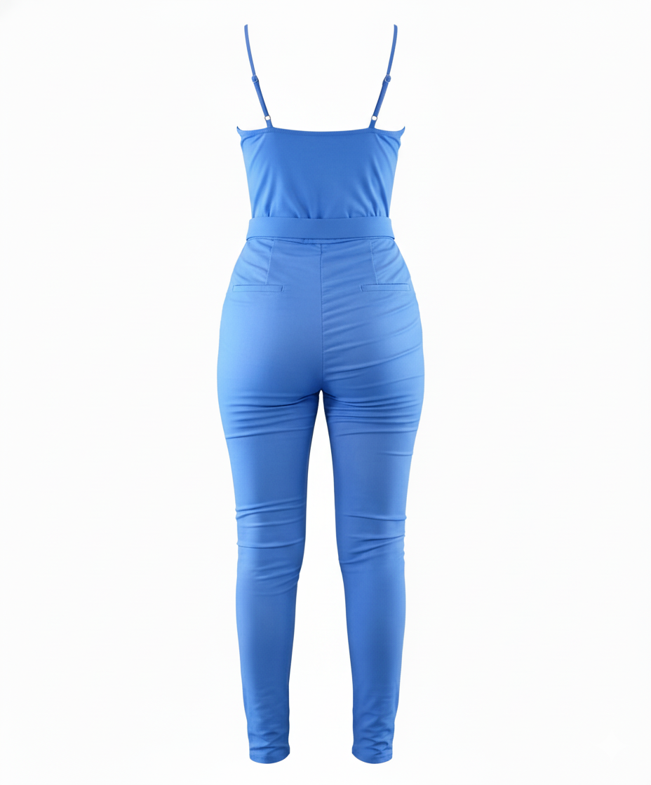 Este enterizo largo de tirantes es la mezcla perfecta entre comodidad y estilo favorecedor. Su diseño ajustado al cuerpo y cinturón decorativo crean una figura estilizada sin esfuerzo, ideal para proyectar seguridad con un aire despreocupado. Ideal para días activos donde no quieres renunciar a verte bien.