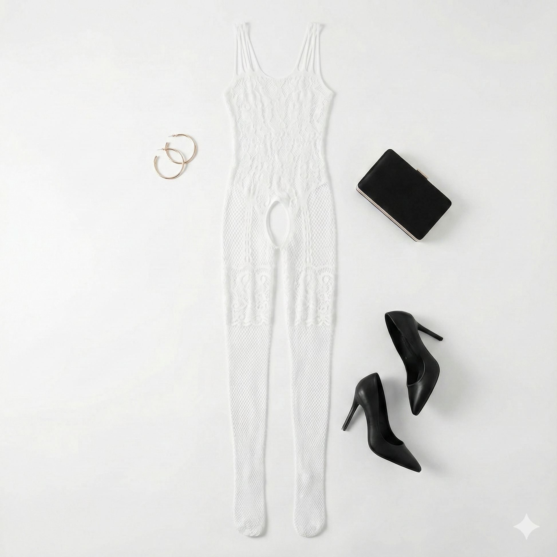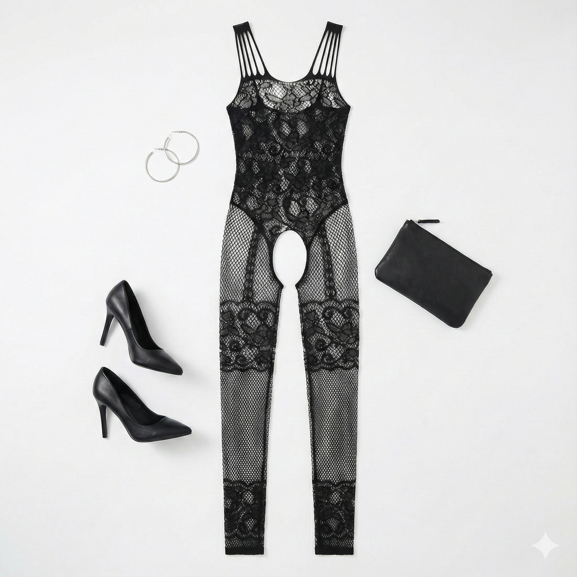 Este enterizo largo de malla es mucho más que lencería: es una declaración de confianza y estilo. Su diseño tipo liguero realza cada curva con una mezcla sutil de transparencias y sofisticación, ideal para mujeres que desean expresar su feminidad sin perder clase. La silueta ajustada y el corte estilizado moldean el cuerpo con intención visual y refinamiento seductor.