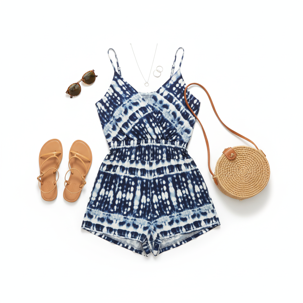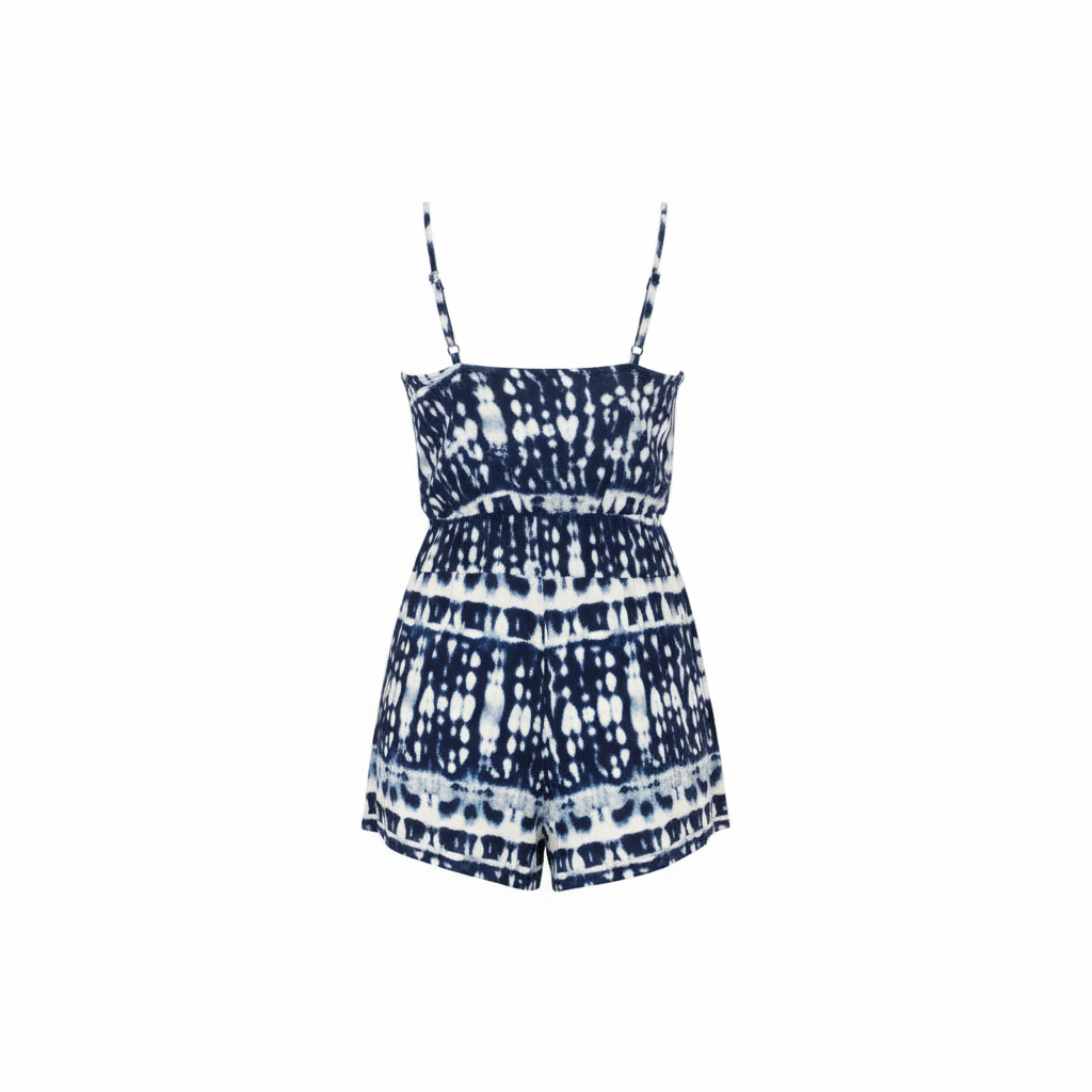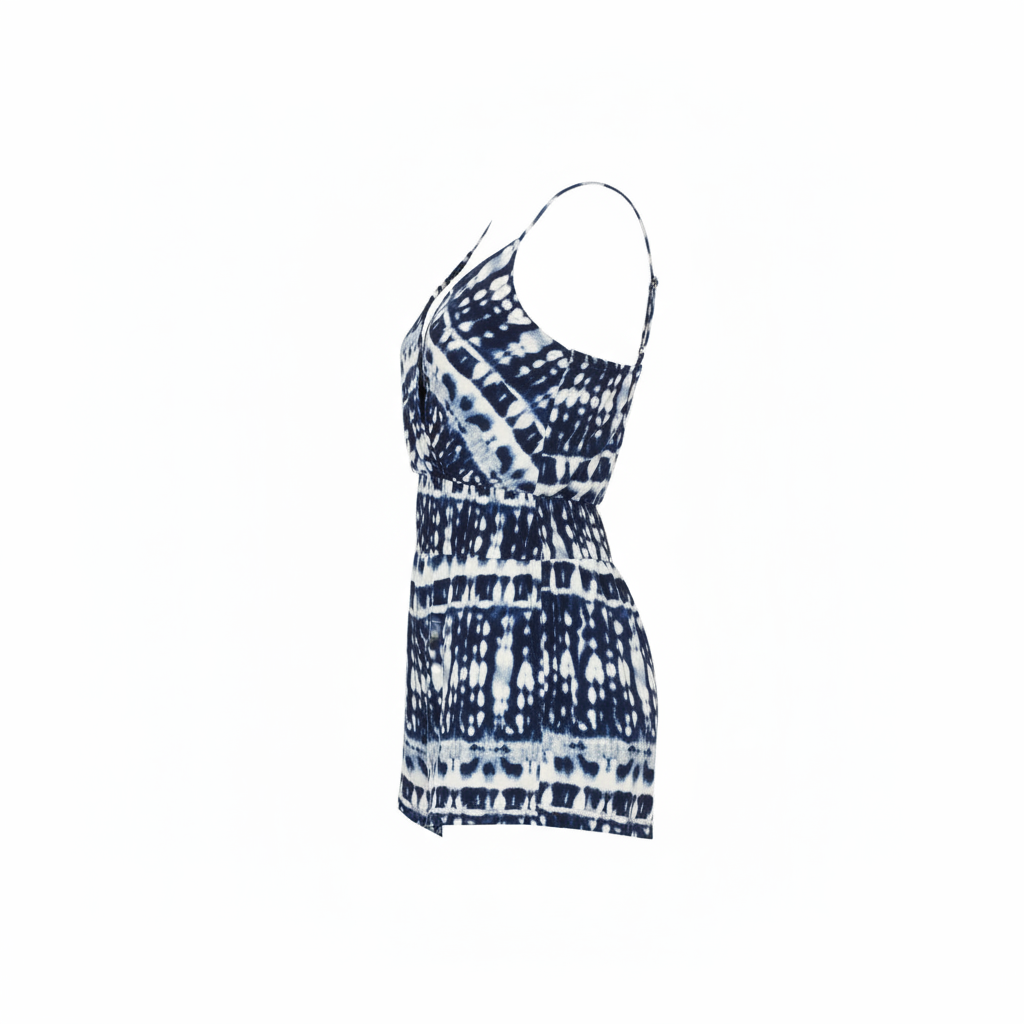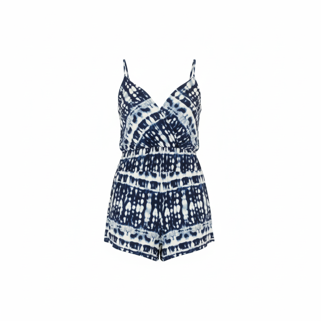 Este enterizo de tirantes con escote cruzado en V y estampado tie-dye proyecta espontaneidad, comodidad y estilo relajado. Su diseño casual abraza la figura sin apretar, y su estampado tipo acuarela agrega un toque artístico a cualquier look. Es la prenda perfecta para días soleados donde la libertad es lo más importante.
