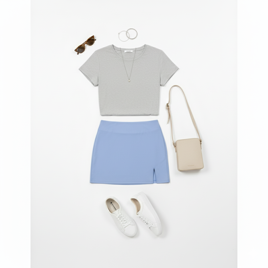 Esta minifalda de corte recto con abertura sutil al costado aporta un toque coqueto y actual sin perder comodidad. Su diseño liso permite múltiples combinaciones, desde tops relajados hasta piezas más formales. Ideal para expresar tu esencia fresca, libre y femenina en cada paso.