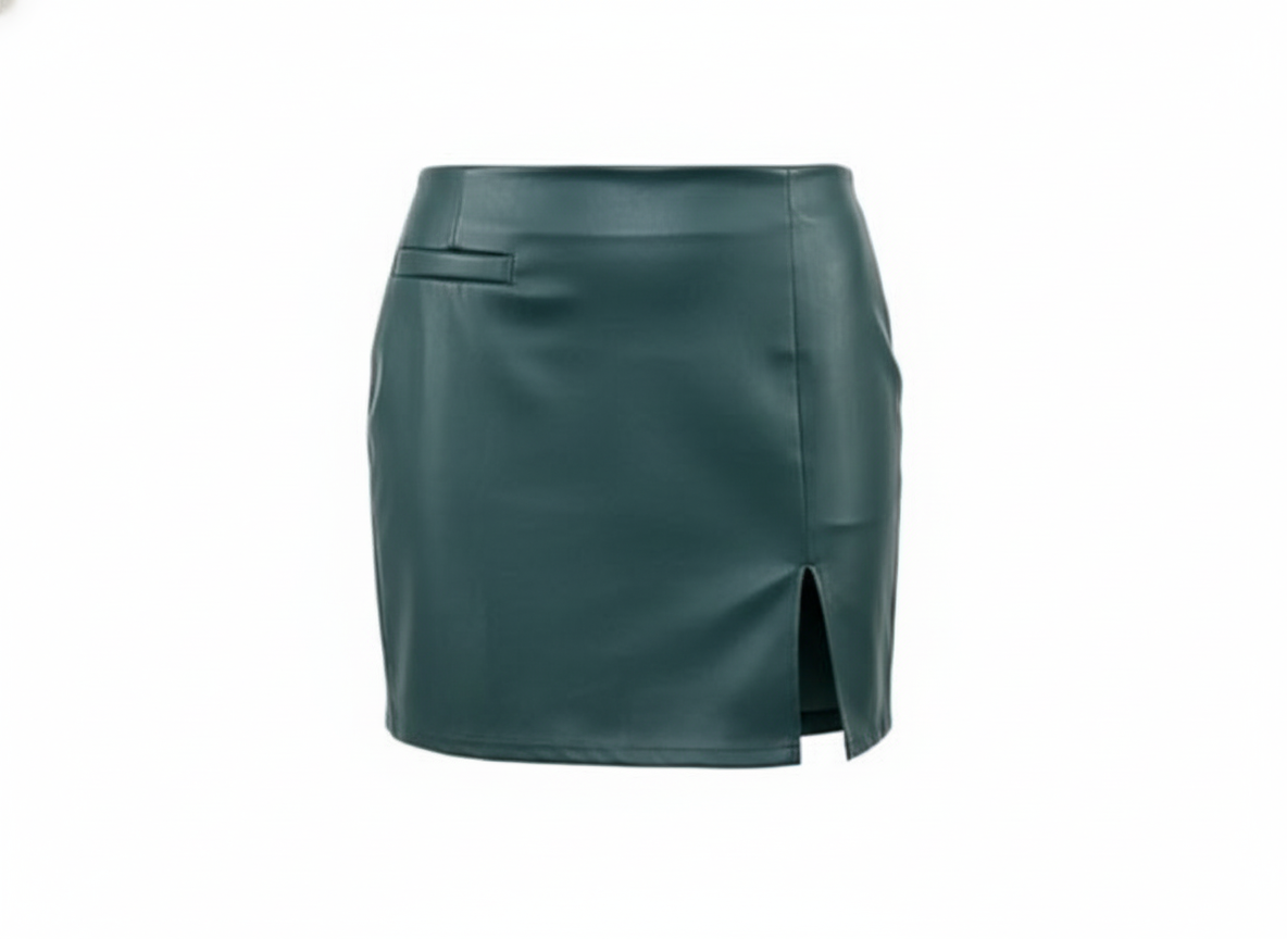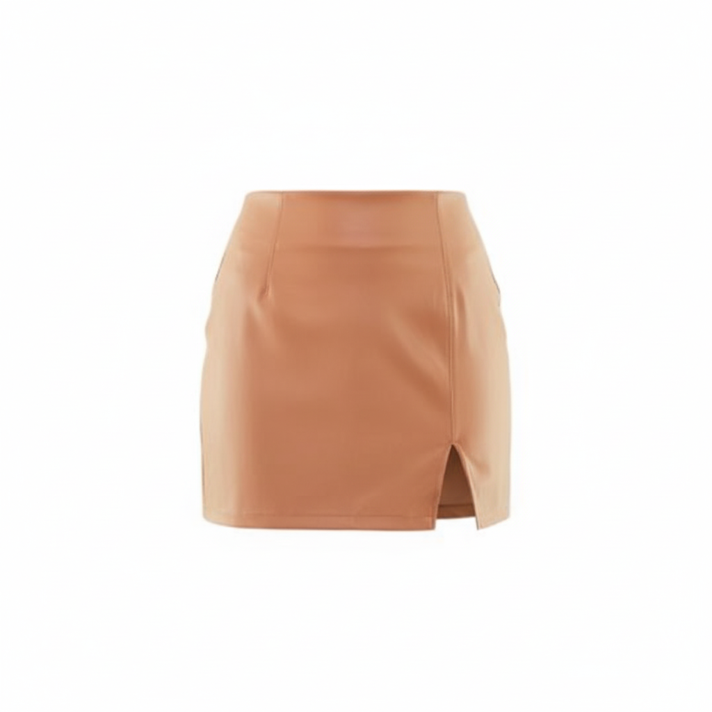 Esta minifalda de vinipiel corte slim con abertura lateral combina sofisticación con un giro atrevido. Su silueta recta y textura lisa la convierten en una pieza versátil para looks casuales con intención. Perfecta para mujeres que desean proyectar seguridad, sensualidad y control visual sin renunciar a la comodidad.
