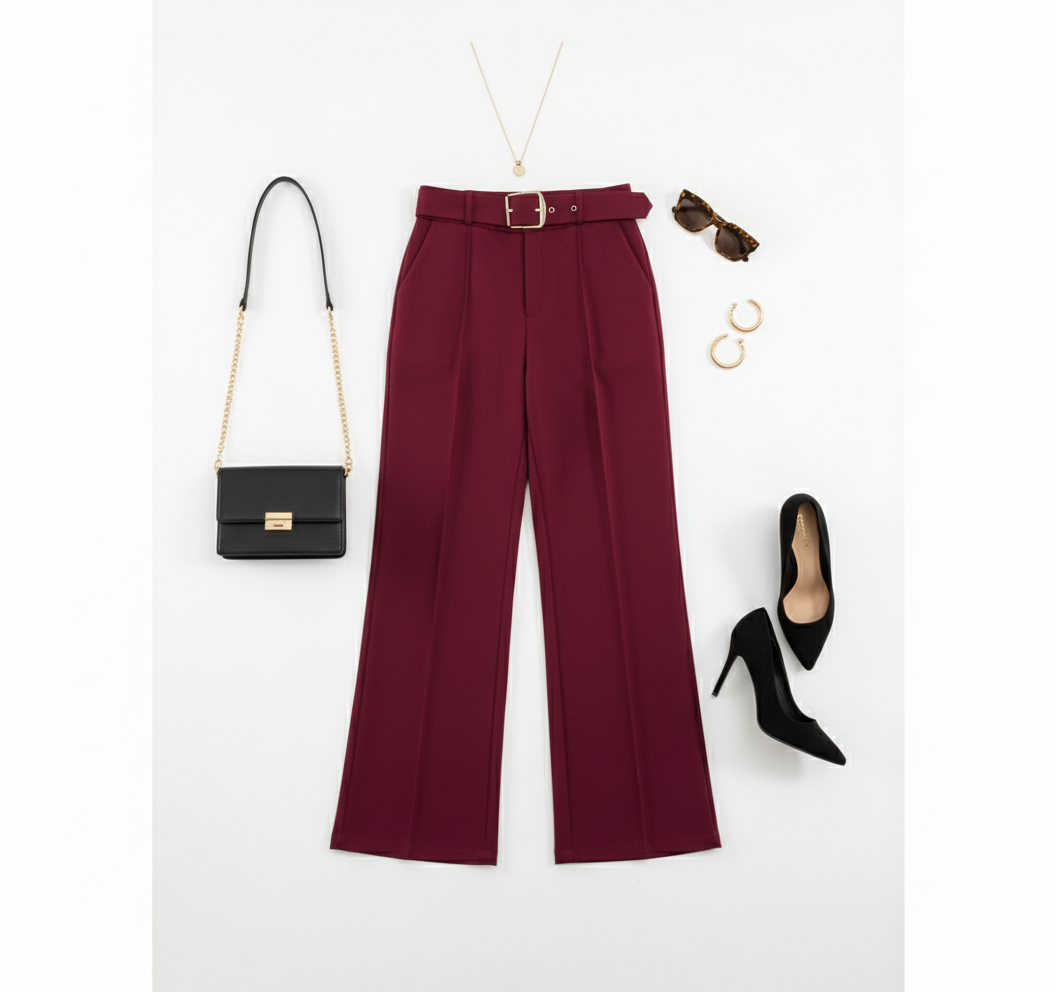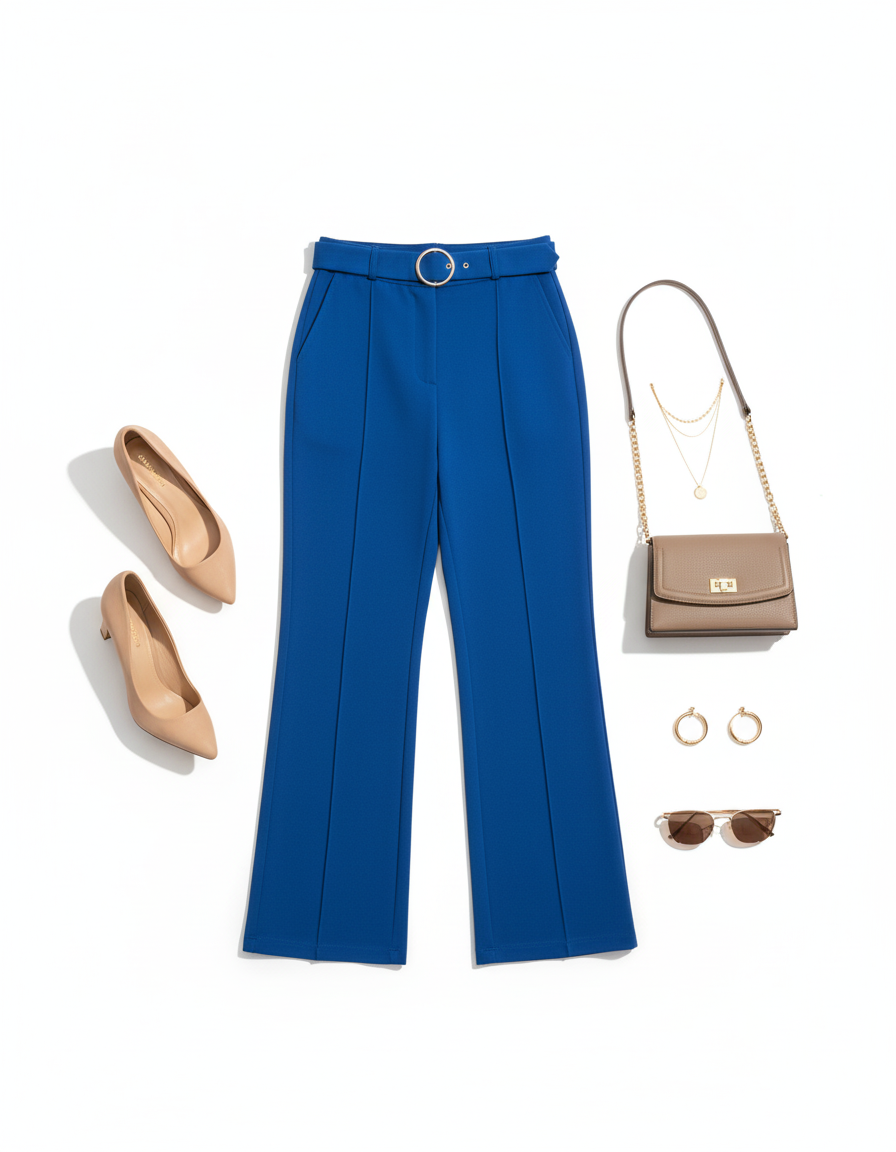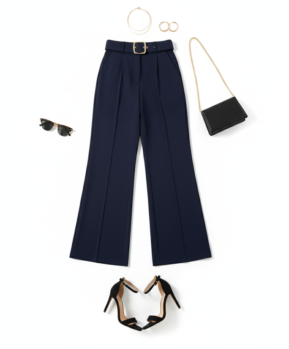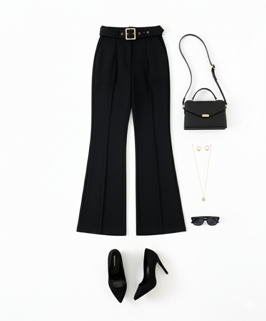 Pantalón acampanado con cinturón que estiliza y realza tu presencia