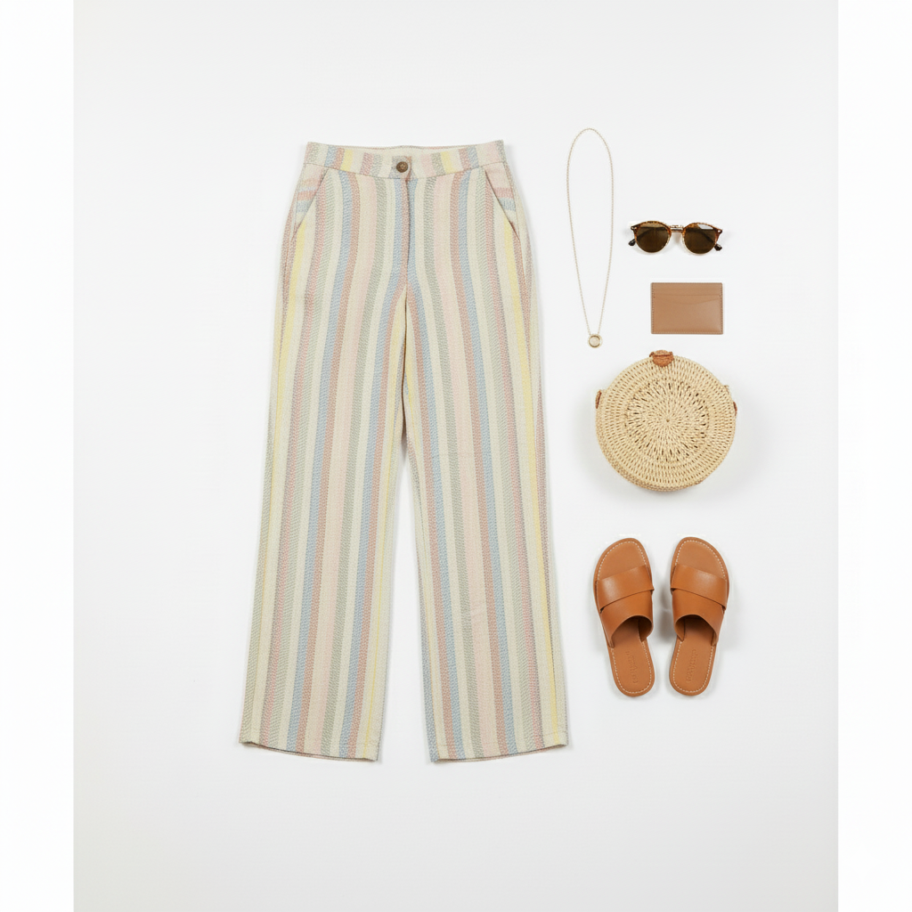 Este pantalón acampanado de caída fluida se convertirá en tu mejor aliado para los días relajados. Las rayas verticales aportan altura y armonía visual, mientras su corte cómodo te permite moverte con libertad. Ideal para quienes priorizan la comodidad sin sacrificar el estilo.