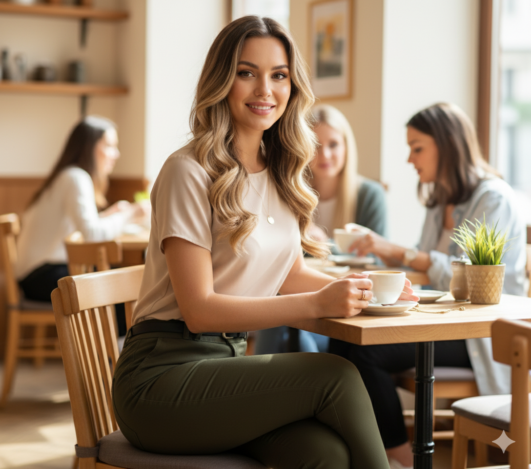 Ideal para oficina, salidas con amigas, reuniones casuales o un día de actividades en la ciudad. Clima sugerido: templado a cálido. Su nivel de impacto visual es medio, ideal para mujeres que buscan pulcritud y definición sin exceso de atención.