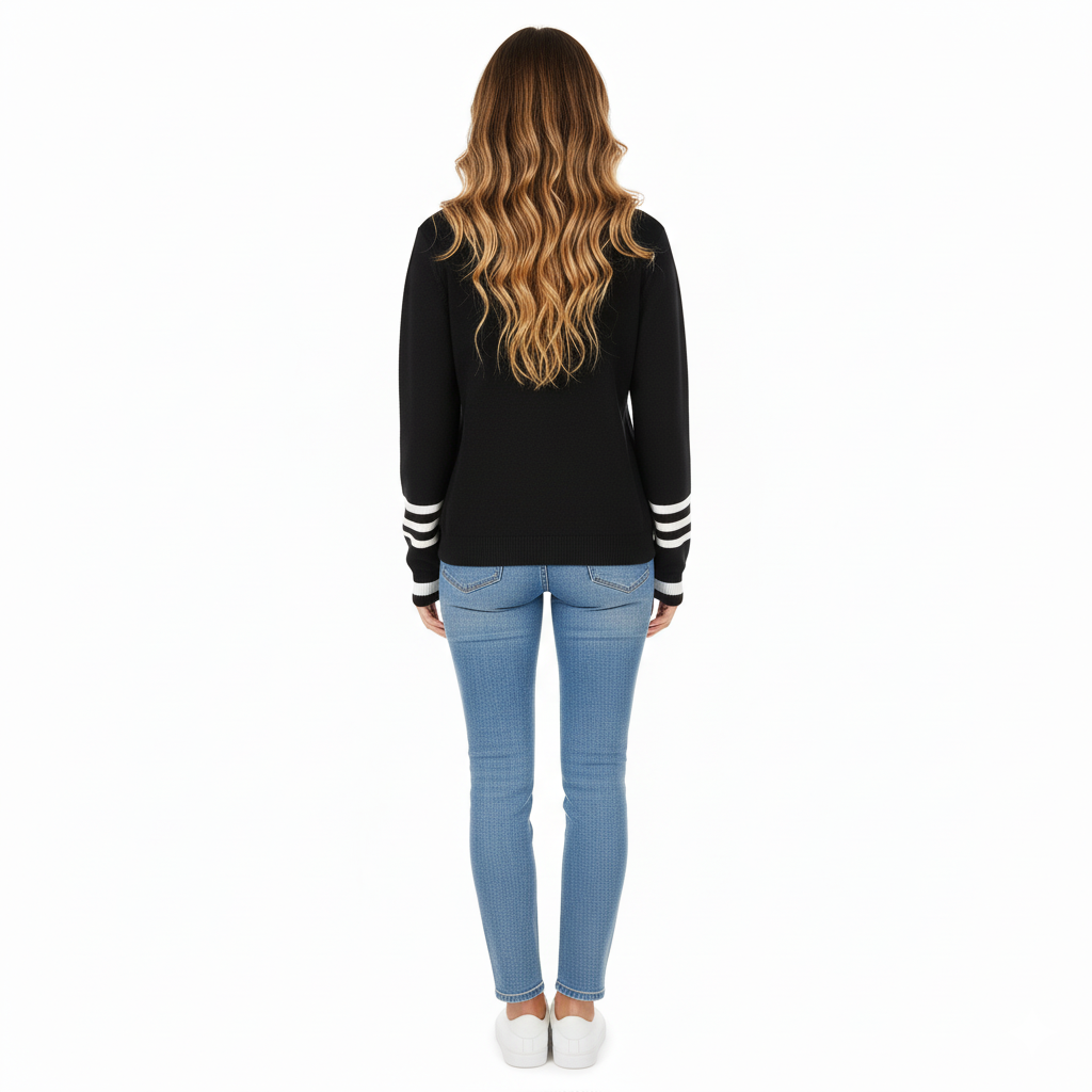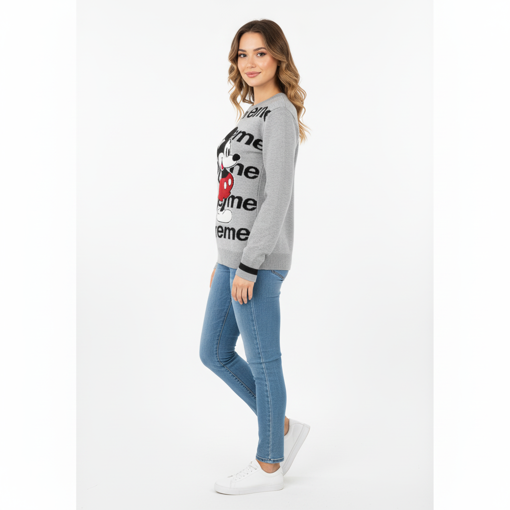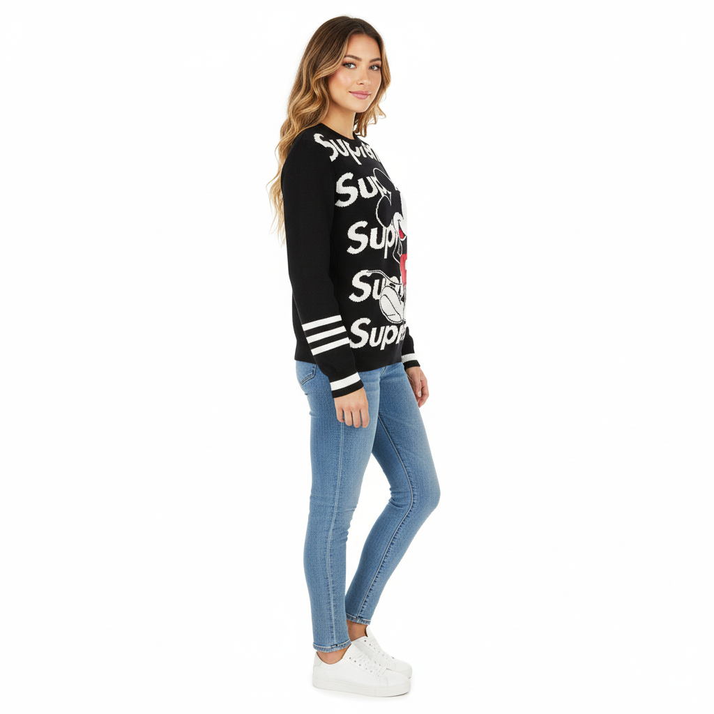 Este suéter de manga larga con cuello redondo y estampado de personaje animado combina la comodidad de un fit relajado con una estética juguetona. Ideal para mujeres que no temen proyectar alegría, autenticidad y un estilo casual con chispa. El tejido es suave, cálido y perfecto para días de frío con buena vibra.
