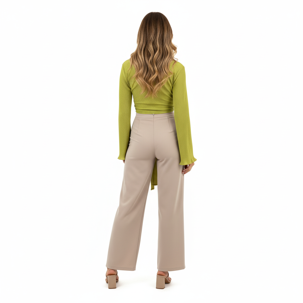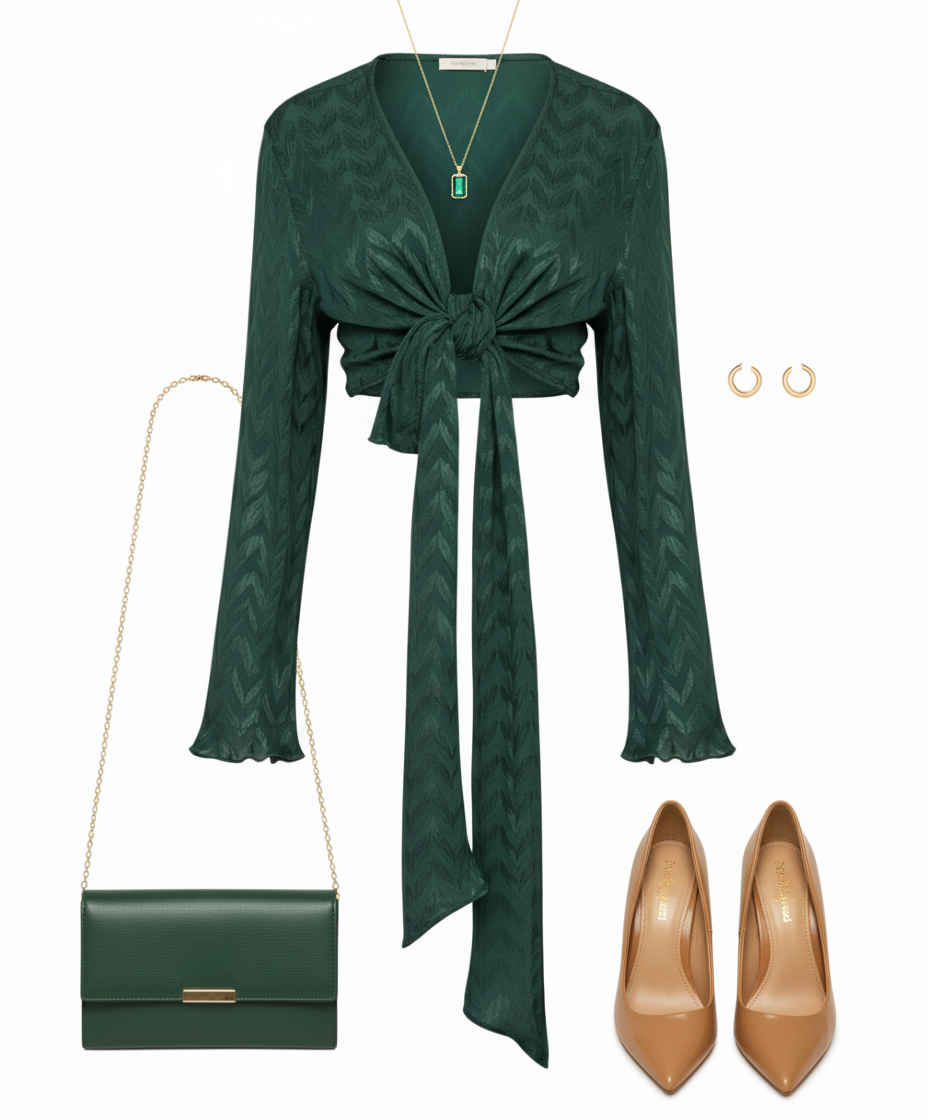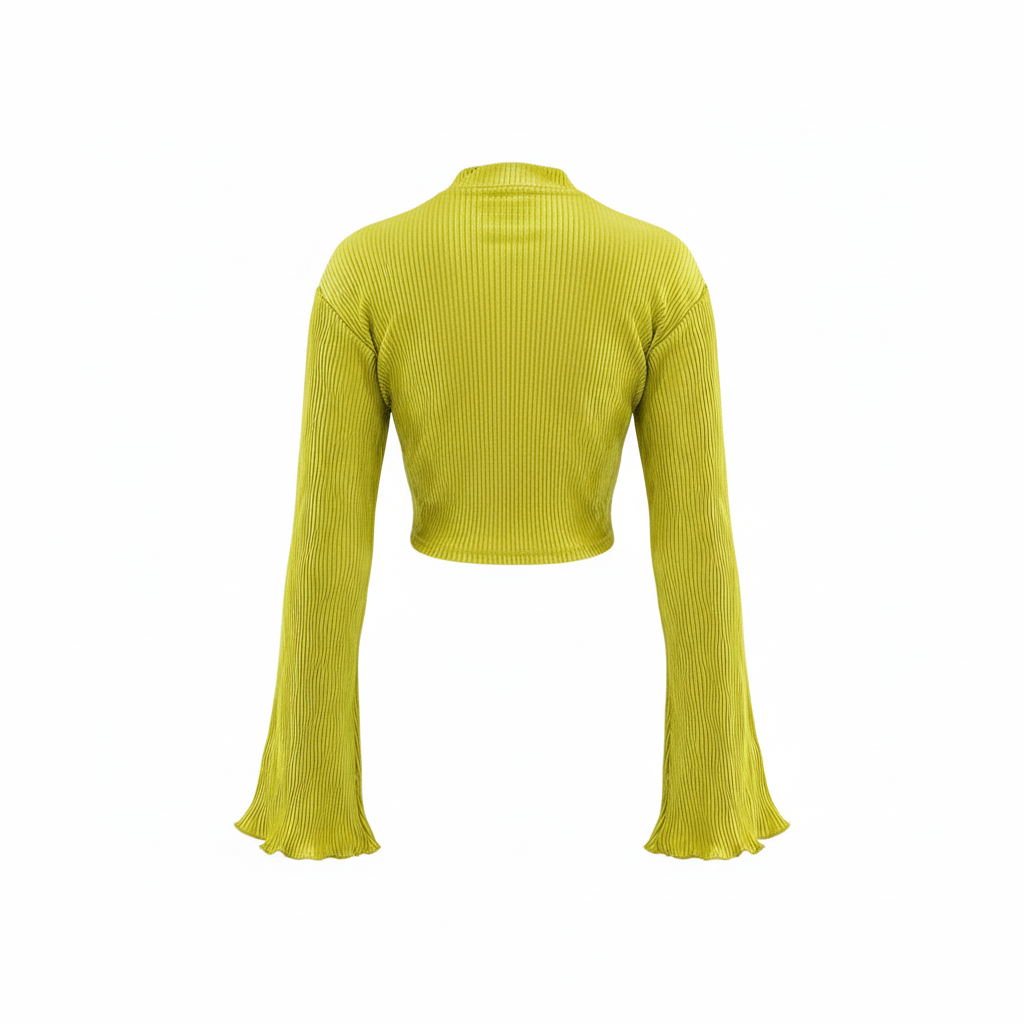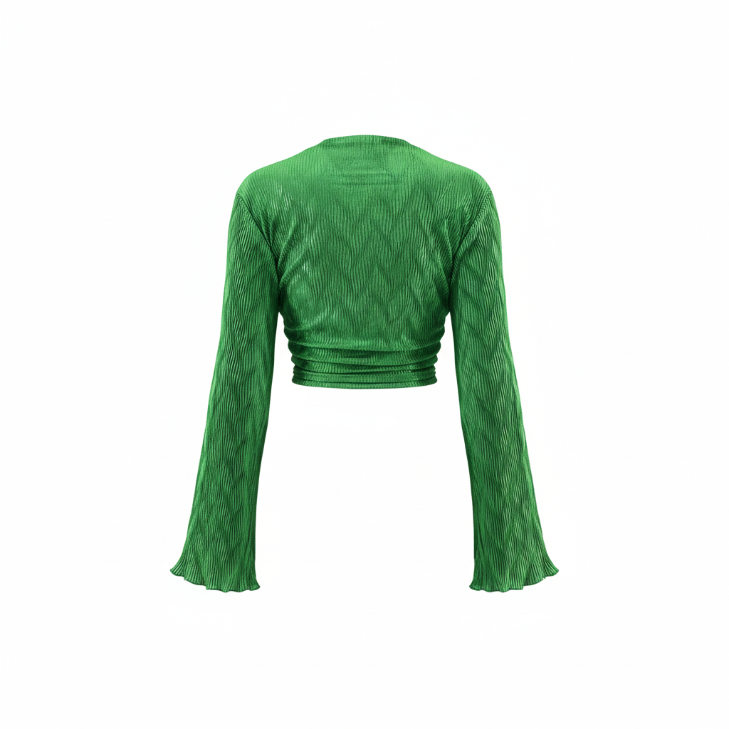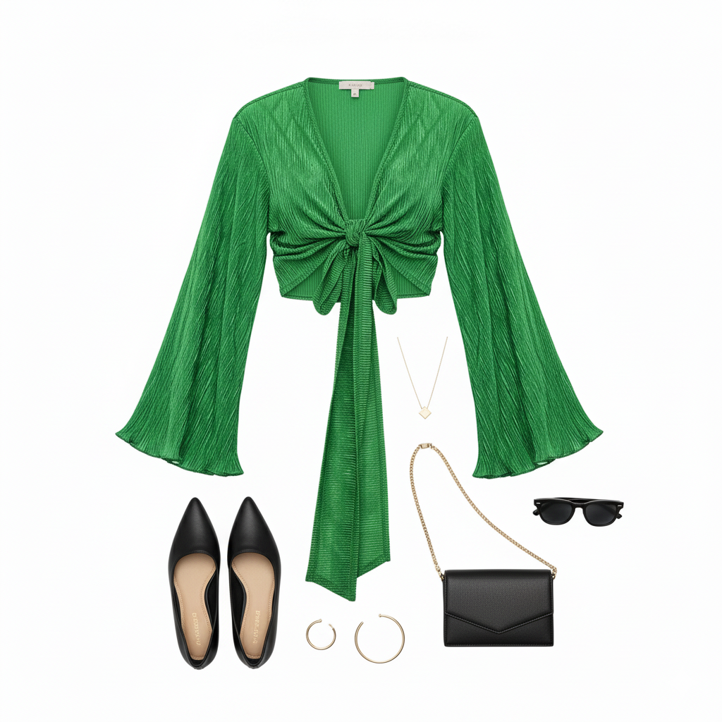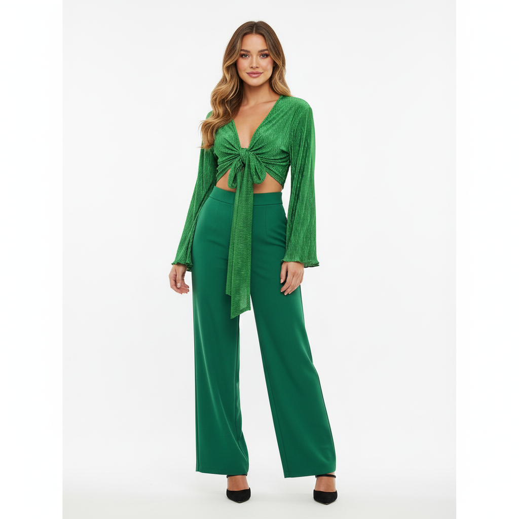 Este top de manga larga con escote profundo y amarre delantero combina frescura, actitud y libertad visual. Sus mangas amplias fluyen con cada movimiento, mientras que el nudo central enmarca la cintura de forma favorecedora. Ideal para looks que requieren un giro moderno y desenfadado sin perder estilo.