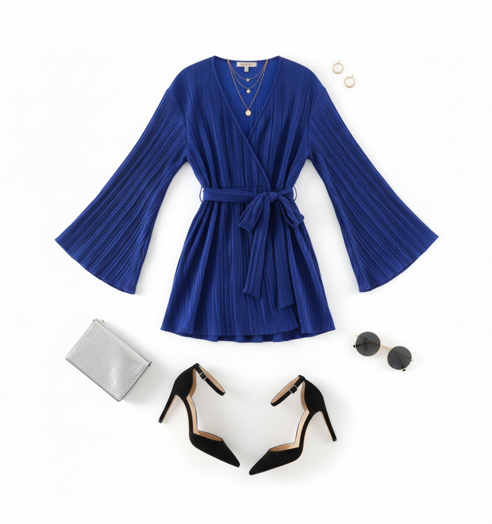Favorece a cuerpos tipo Reloj de arena, Rectángulo y Triángulo, especialmente en figuras tipo 8 con curvas, X o Rectas, de estatura Petite o Mediana. El cinturón define la cintura mientras que las mangas amplias equilibran hombros.