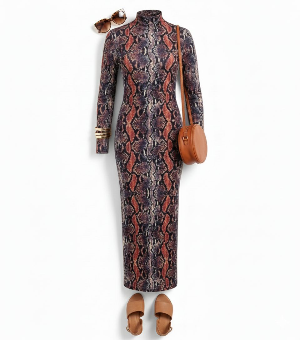 Vestido largo animal print con silueta que estiliza sin esfuerzo